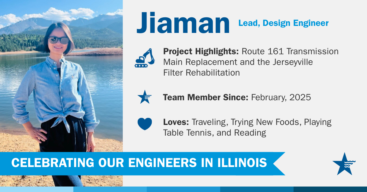 A - My passion for protecting the environment has shaped my career from the very beginning and led me to American Water. I started my career journey as an engineering intern at a chemical plant in Philadelphia, where I gained hands-on experience in air quality monitoring and process improvements. After graduation, I joined the City of Philadelphia Water Department’s Planning and Research team, performing treatment studies to enhance corrosion control strategies and deepening my understanding of the mission of safe drinking water utilities.