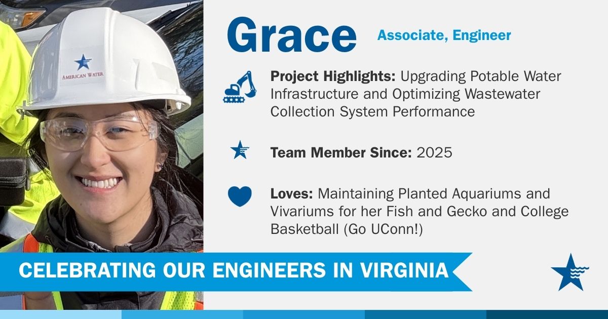 As a young engineer, I became familiar with American Water through the AWWA Journal, which I regularly read to stay current on advancements in water treatment. Many of the articles that influenced me were authored by American Water’s research team. When a close colleague later joined the company and spoke highly of its technical excellence, culture, and mission, it reinforced my interest and ultimately led me to pursue a career at American Water.