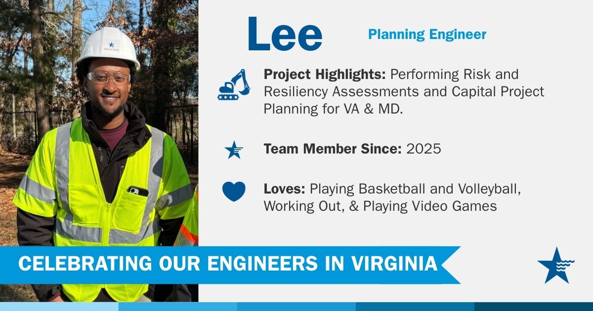 A - My team and I tackle some of the most meaningful challenges facing communities today. From modernizing aging infrastructure and deploying new technologies, to preparing our systems for increasingly extreme climate conditions. Our work brings together experts in system resiliency, pipeline condition assessment and hydraulic modeling, water quality and treatment, and wastewater collection and treatment. Every day, we strive to design sustainable solutions that reduce our energy footprint while building stronger, more resilient water and wastewater systems for future generations. I am especially proud of our work with the Lead Service Line Replacement Collaborative, a multi-industry taskforce advancing the replacement of lead service lines across communities nationwide. This work will have a lasting impact that truly improves people’s lives.