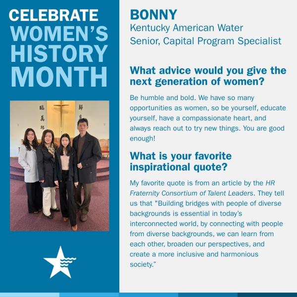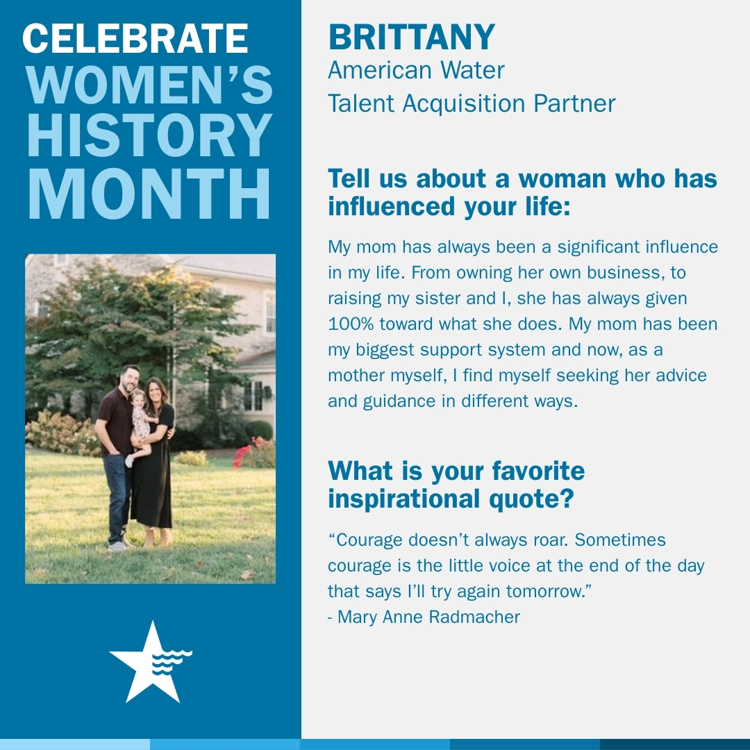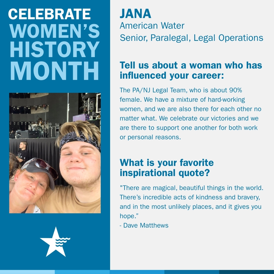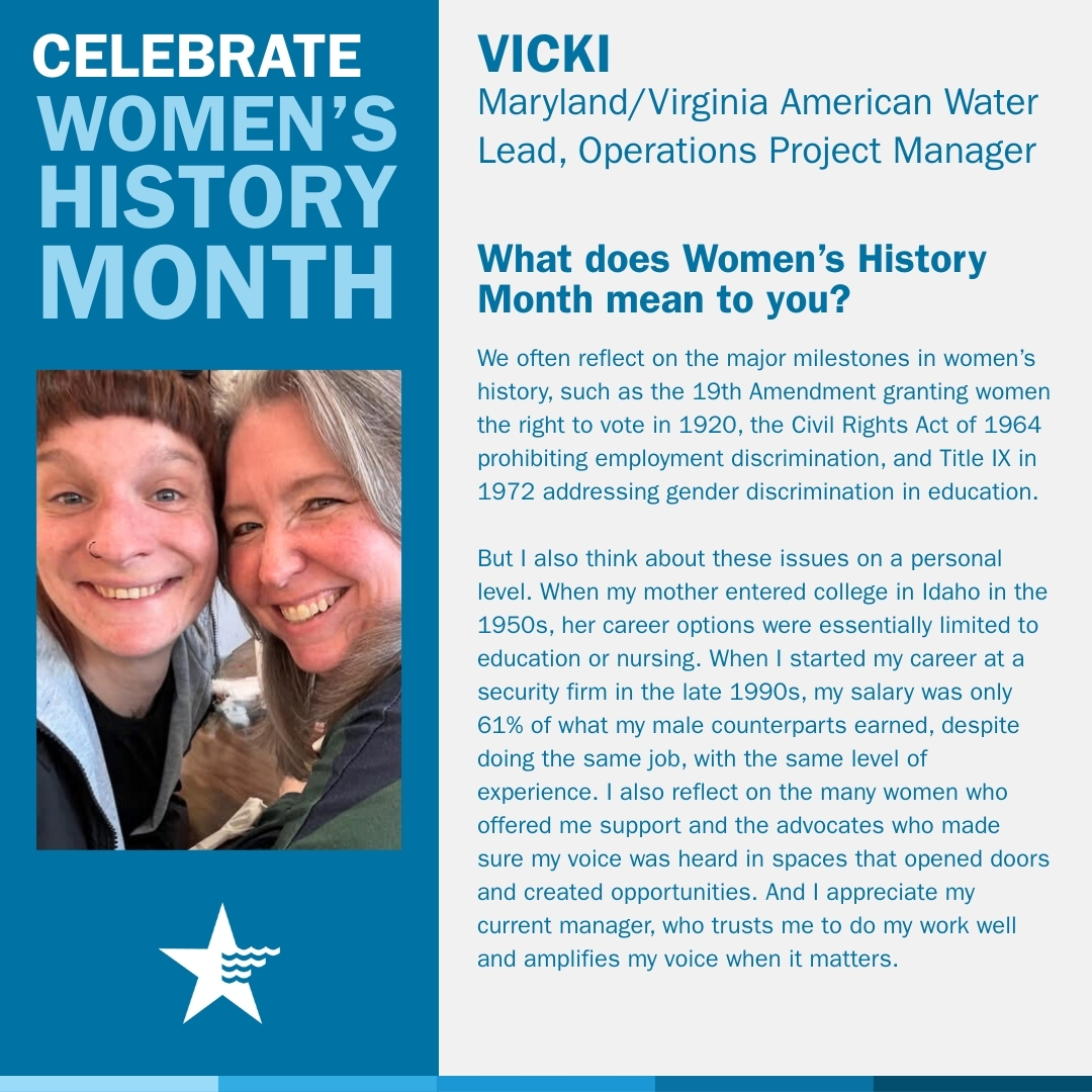 Throughout March, American Water recognizes Women’s History Month by celebrating the women who strengthen our industry, support our communities and help shape the future of water.