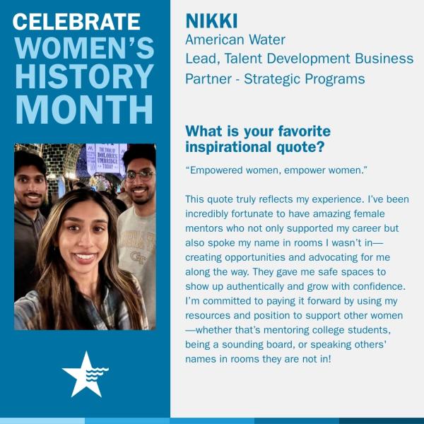 This Women’s History Month, American Water reaffirms its commitment to developing, supporting, and celebrating the women across our company who power our operations and help Keep Life Flowing.