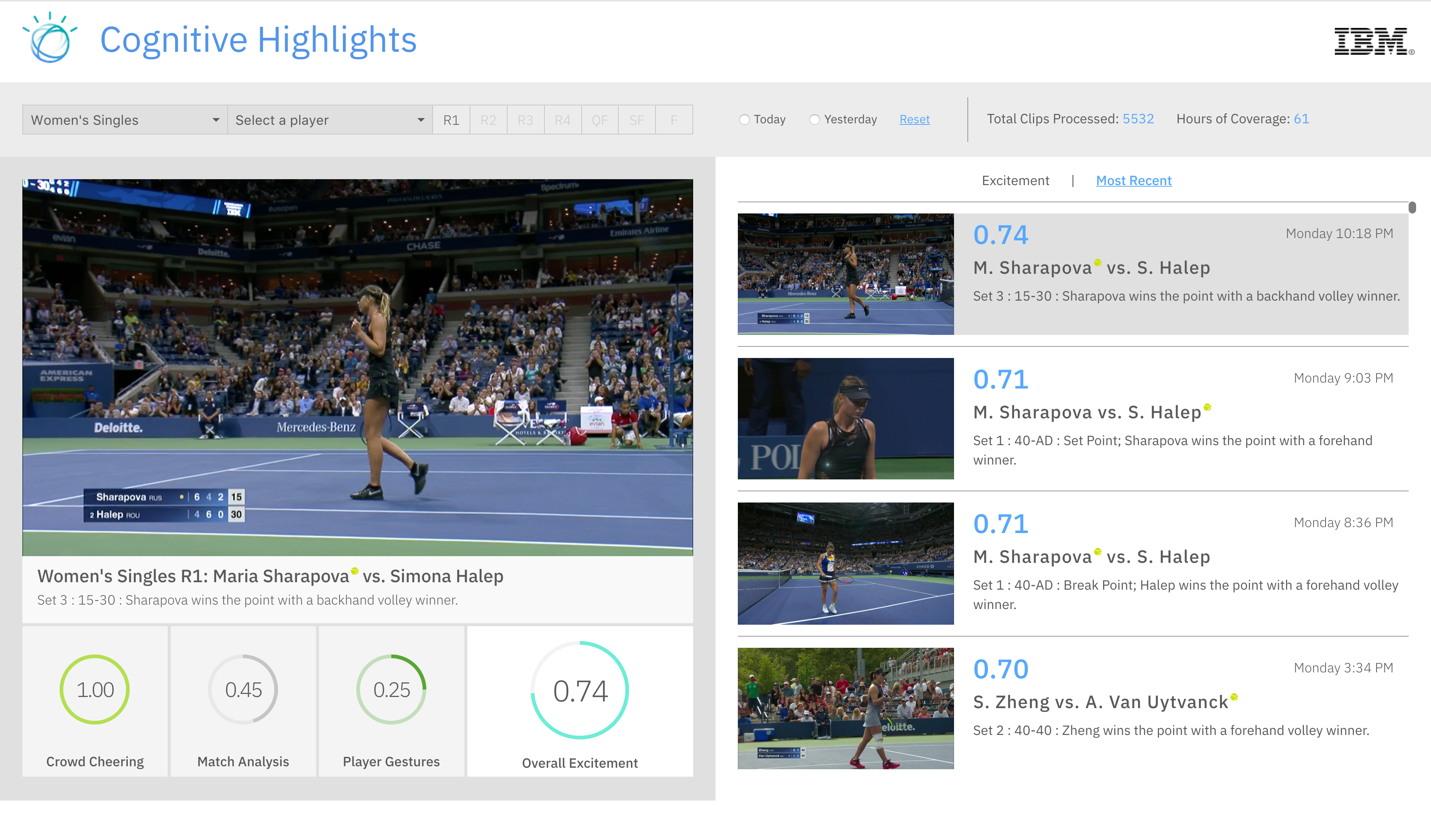 IBM Debuts Cognitive Highlights at the 2017 US Open Tennis Tournament