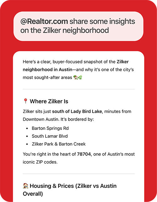 Over the past year, Realtor.com® has rolled out a series of AI-powered innovations designed to make the home search smarter, faster and far more intuitive for consumers, including its AI-powered natural language search feature, AI-generated listing tags, and immersive visual tools that highlight unique property attributes. In every team across the company, AI is being leveraged to accelerate development, drive scale and deliver quality experiences. Together, these efforts are laying the foundation for an AI-driven Realtor.com® experience that is built to lead the future of real estate.