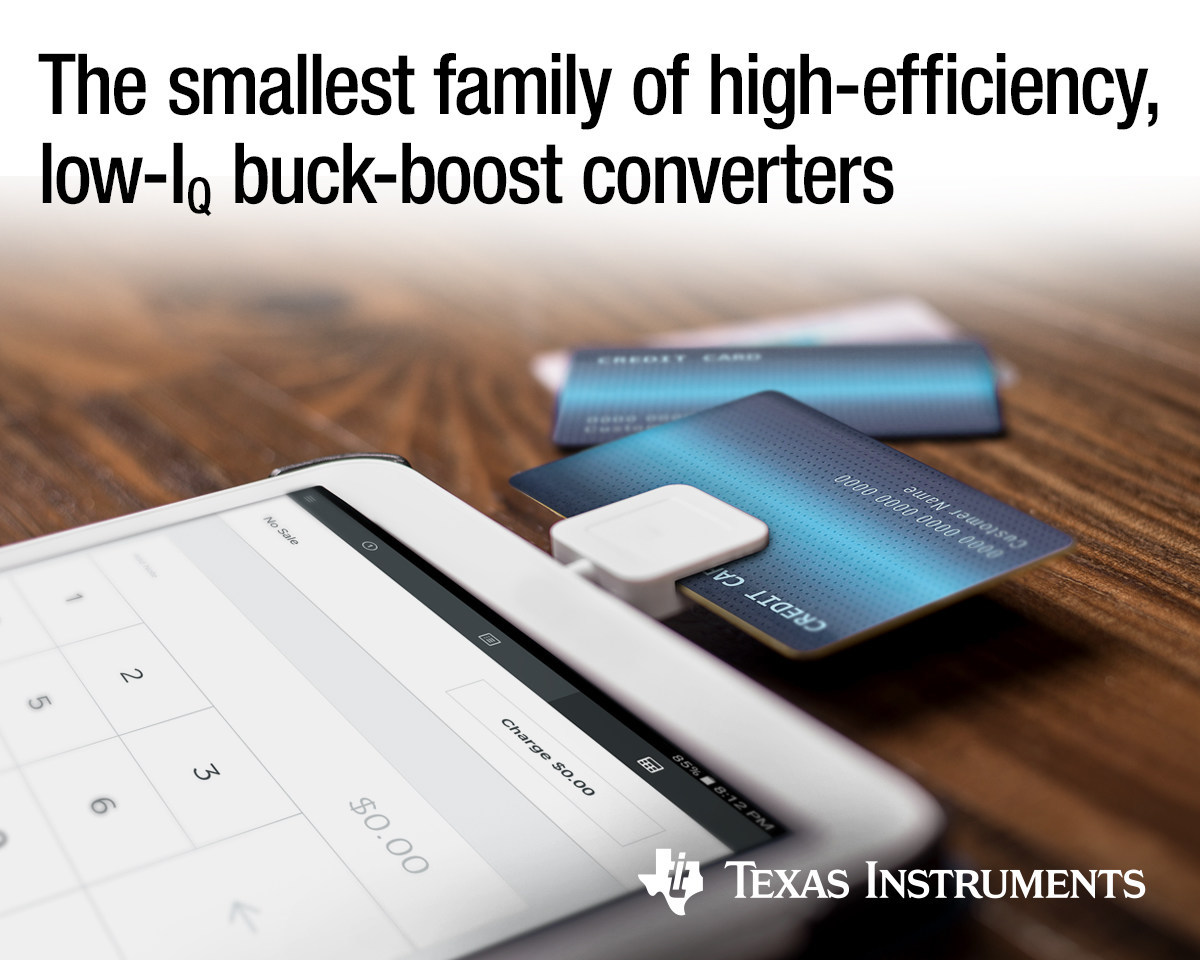 DALLAS, Sept. 30, 2019 /PRNewswire/ -- Texas Instruments (TI) (Nasdaq: TXN) today introduced a family of four high-efficiency, low-quiescent-current (IQ) buck-boost converters that feature tiny packaging with minimal external components for a small solution size. The integrated TPS63802, TPS63805, TPS63806 and TPS63810 DC/DC noninverting buck-boost converters offer wide input and output voltage ranges that scale to support multiple battery-driven applications, helping engineers simplify and accelerate their designs. For more information, samples and evaluation modules, see www.ti.com/new-buck-boosts-pr.